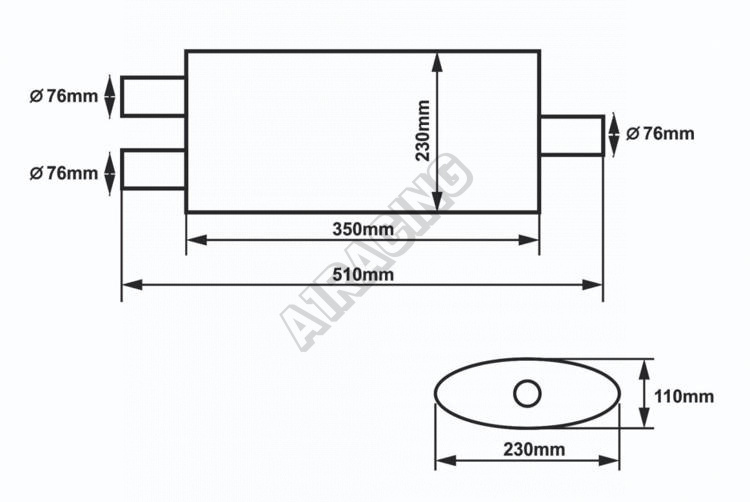 Středový tlumič 76mm SLIDE 304SS 350mm