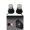 Balení obsahuje 2 kusy mini stroboskopu o průměru 25 mm s přívodnímy kabely . Pomocí objímek stroboskop aretujete do předem připraveného otvoru. Stroboskopy jsou i vodě odolné.