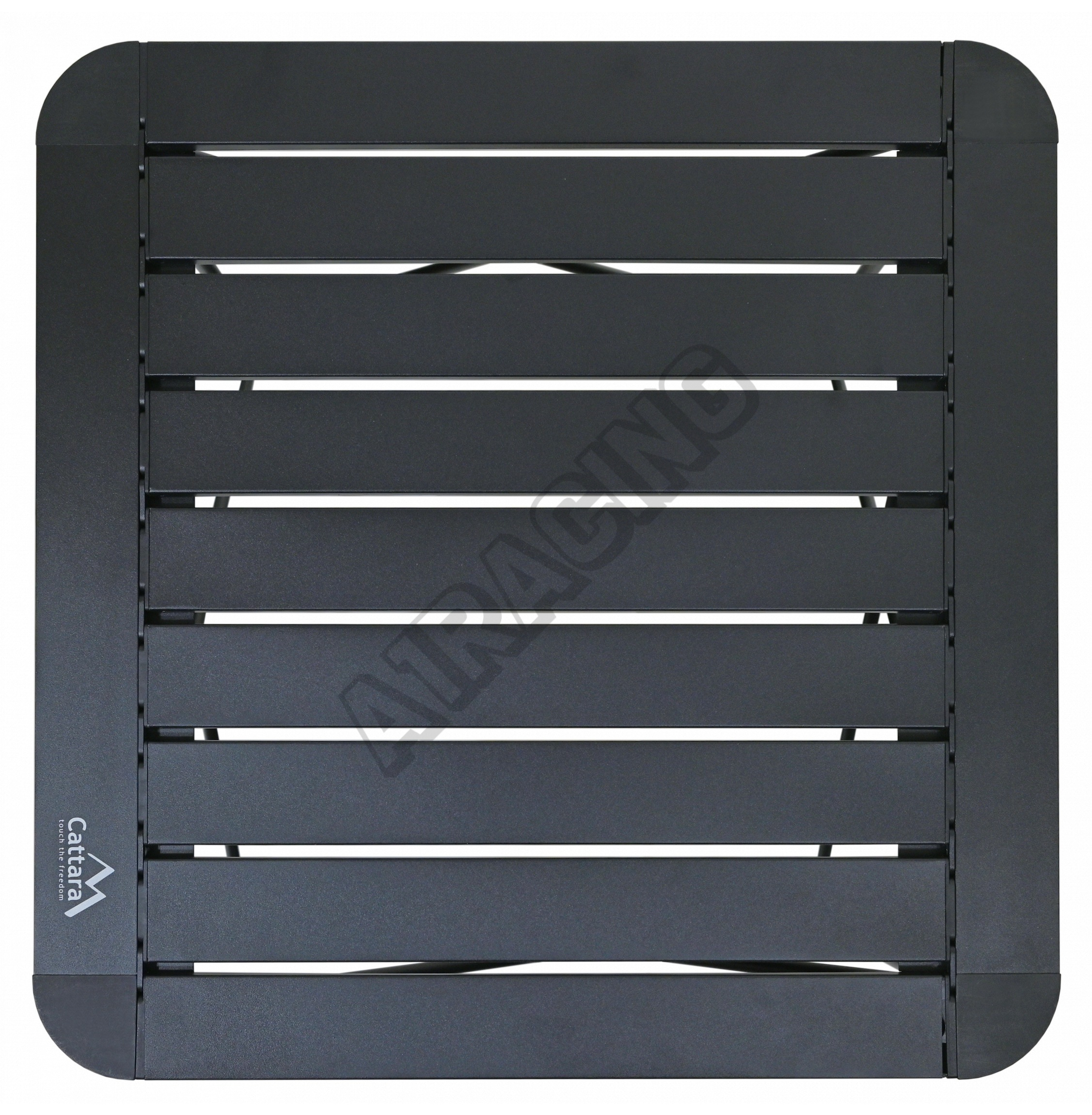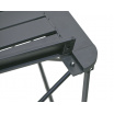 Stůl je opatřen lamelovou plochou s rozměry 52 x 52 cm ve výšce 46 cm a nabízí maximální nosnost až pro 50kg vybavení, potravin apod.