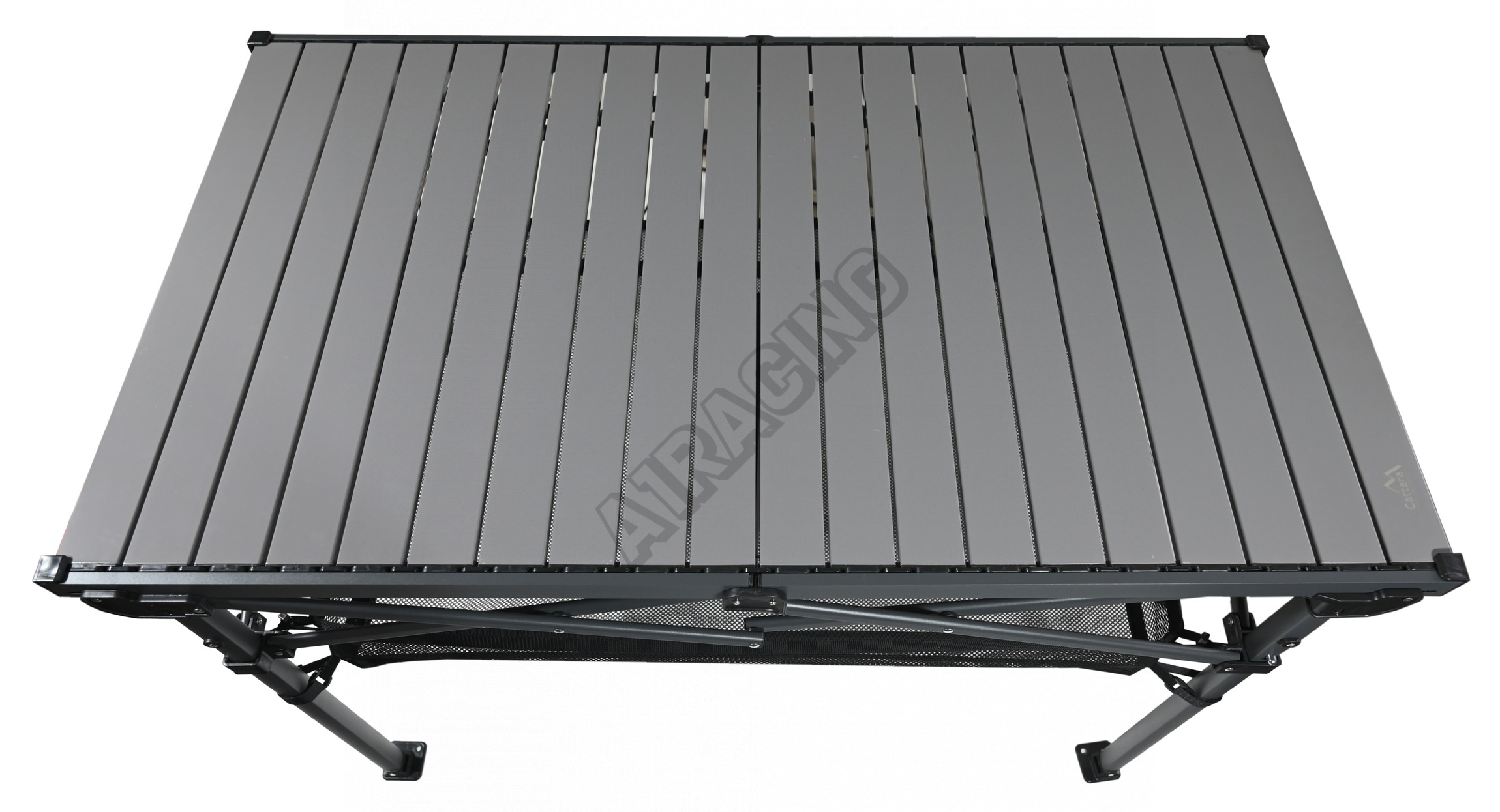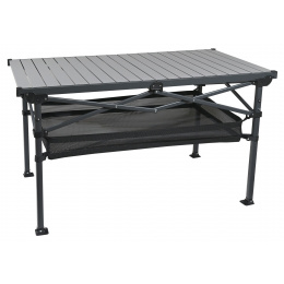 Stůl disponuje lamelovou hliníkovou deskou o rozměrech 118 x 70 cm ve výšce 70 cm, ta poskytuje dostatek prostoru pro přípravu a servírování jídel. S maximální nosností až 100 kg je stůl dostatečně pevný pro veškeré kempingové potřeby a potraviny.