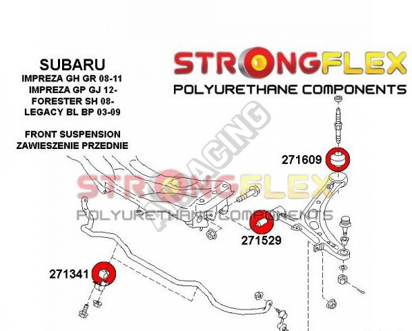 Subaru Impreza 2001+ GH GR StrongFlex sestava silentbloků jen pro přední nápravu 6 ks