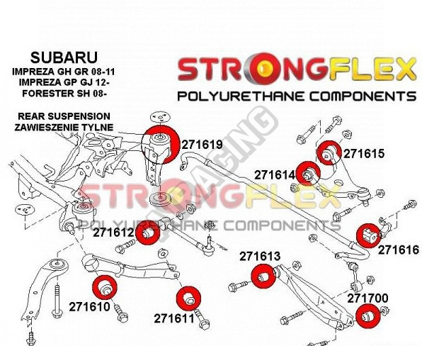Subaru Impreza 2001+ GH GR StrongFlex sestava silentbloků jen pro zadní nápravu 16 ks obsahuje: