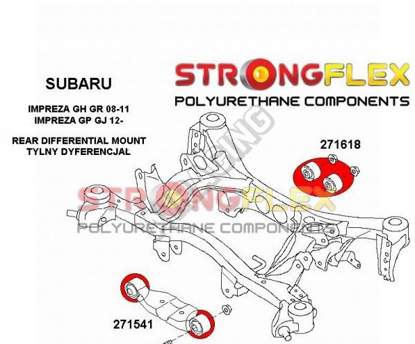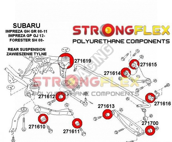 Subaru Impreza 2001+ GH GR StrongFlex Sport (tvrdost 90ShA) kompletní sestava silentbloků na celé auto obsahuje :