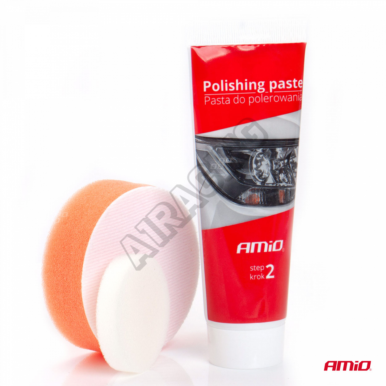 Sada navržená k obnovení původního lesku velmi zmatnělým, zažloutlým světlometům. Sada je určena ke zlepšení kvality svícení světlometů. 3 jednoduché kroky: broušení, leštění, ochrana Díky použití této sady není potřeba měnit světlomety za nové. Jednoduché na použití. Sada neobsahuje elektrickou leštičku. Navrženo pro obnovu dvou světlometů. Sada obsahuje: 2 x brusný papír, zrnitost P800 2 x brusný papír, zrnitost P1200 2 x brusný papír, zrnitost P2000 2 x houbička (1 x bílá, 1 x oranžová) 1x 85g tuba s lešticí pastou 2 x 3ml tekutina chránící před UV zářením 1 x maskovací páska (300*2 cm) 1 x držák 1 x adaptér se závitem M10