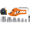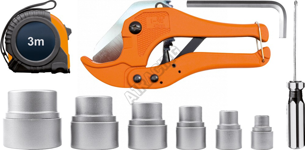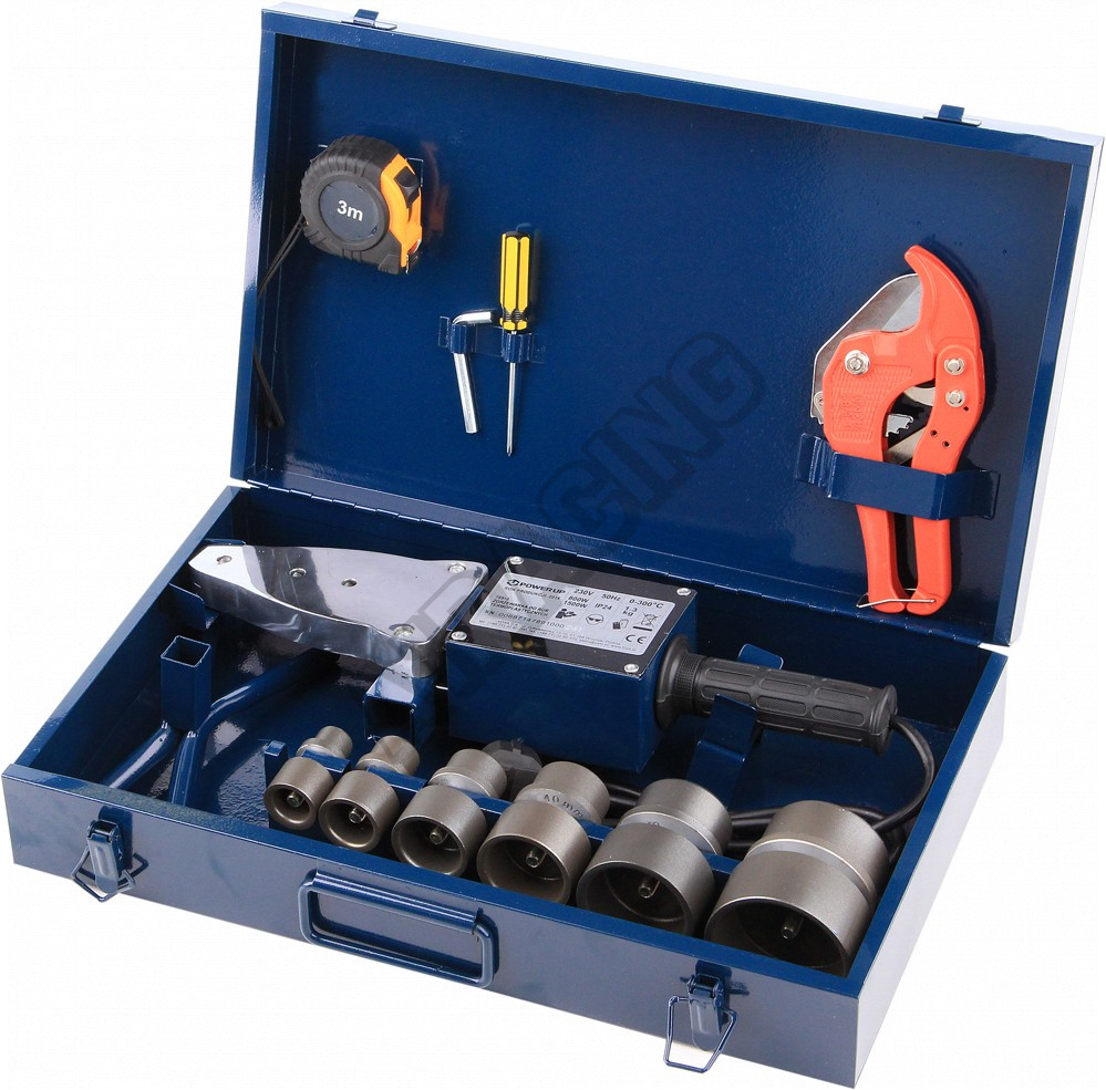 • Napájení 230 V / 50 Hz • 2 stupně příkonu • 0 - 800 W / 0 - 1500 W • Plynulá regulace teploty 0 - 300° C • V příslušenství nástavce pro vnější a vnitřní průměry trubek: • Průměr 20 / 25 / 32 / 40 / 50 / 63 mm • Uloženo v kovovém kufru