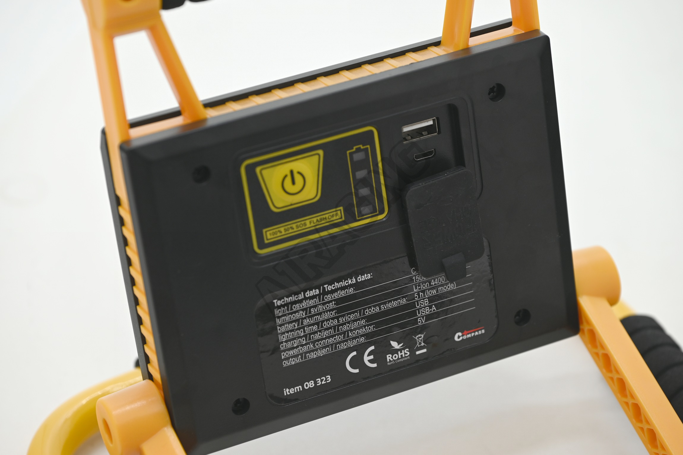 Lampa je vybavena vestavěnou Li-Ion baterií o kapacitě 4400 mAh, kterou lze snadno dobíjet pomocí přiloženého USB kabelu. Průběh nabíjení je jasně signalizován na zadní straně zařízení, takže vždy budete mít přehled o stavu baterie. Díky vestavěnému USB výstupu můžete tuto lampu také využít jako powerbanku a nabíjet další zařízení.