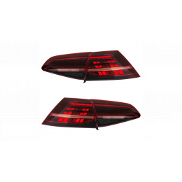 TYLNE ŚWIATŁA LED (CZERWONA SOCZEWKA) PASUJĄCE DO VOLKSWAGEN GOLF 7 7.5 2012-2020 Z ZESTAWEM OKABLOWANIA; WSKAŹNIK SEKWENCYJNY
