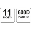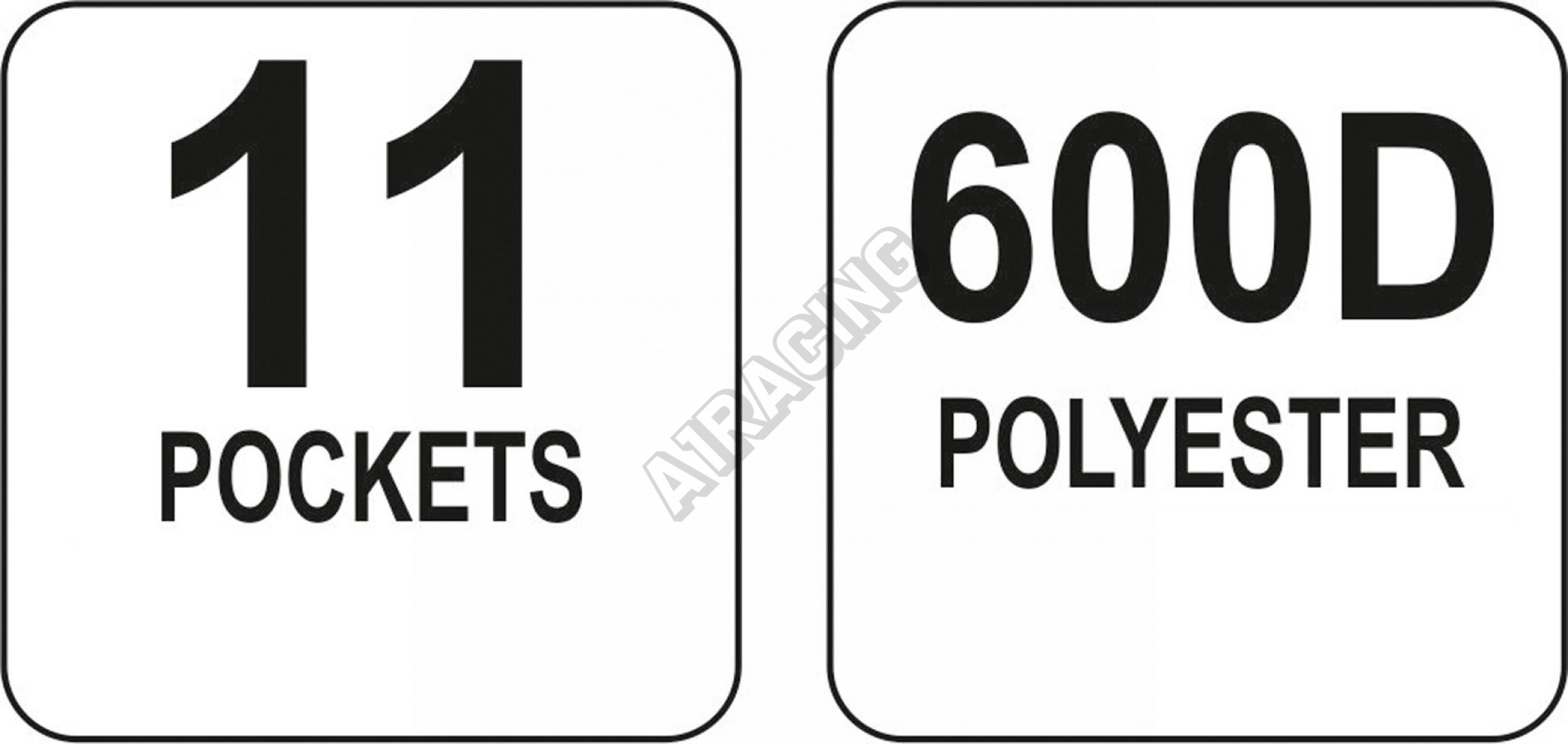 Praktická otevřená taška na nářadí zhotovená z odolného polyesteru 600D se zesíleným dnem odolným proti vlhkosti.