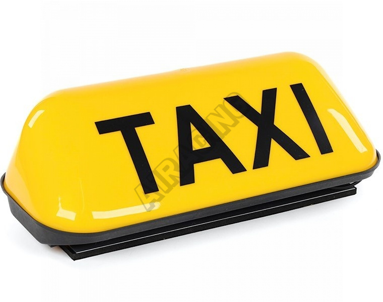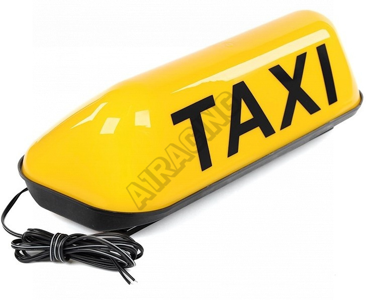 Lampa v bílém pouzdře s nápisem TAXI na obou stranách