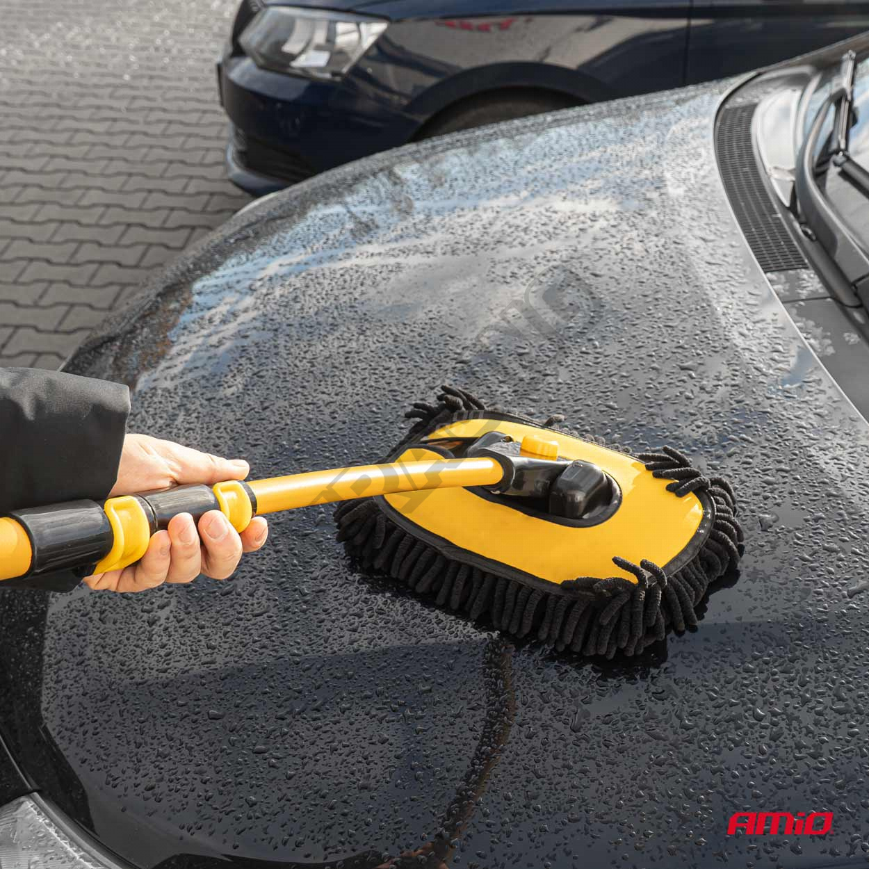 - Teleskopická rukojeť (46-100cm): Nastavitelná délka usnadňuje mytí těžko dostupných míst, jako jsou střecha, okna nebo spodní části vozidla.