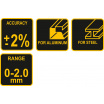 Tester pro měření tloušťky laku na hliníkových a ocelových površích. Umožňuje snadnou kontrolu vrste