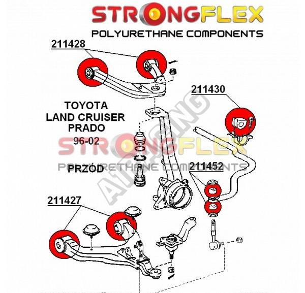 Toyota Land Cruiser StrongFlex Sport sestava silentbloků jen pro přední nápravu 12 ks obsahuje:
