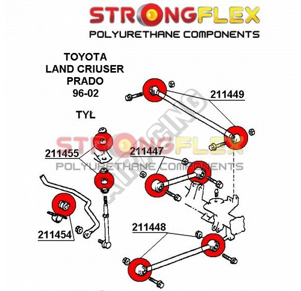 Toyota Land Cruiser StrongFlex Sport sestava silentbloků jen pro zadní nápravu 14 ks obsahuje: