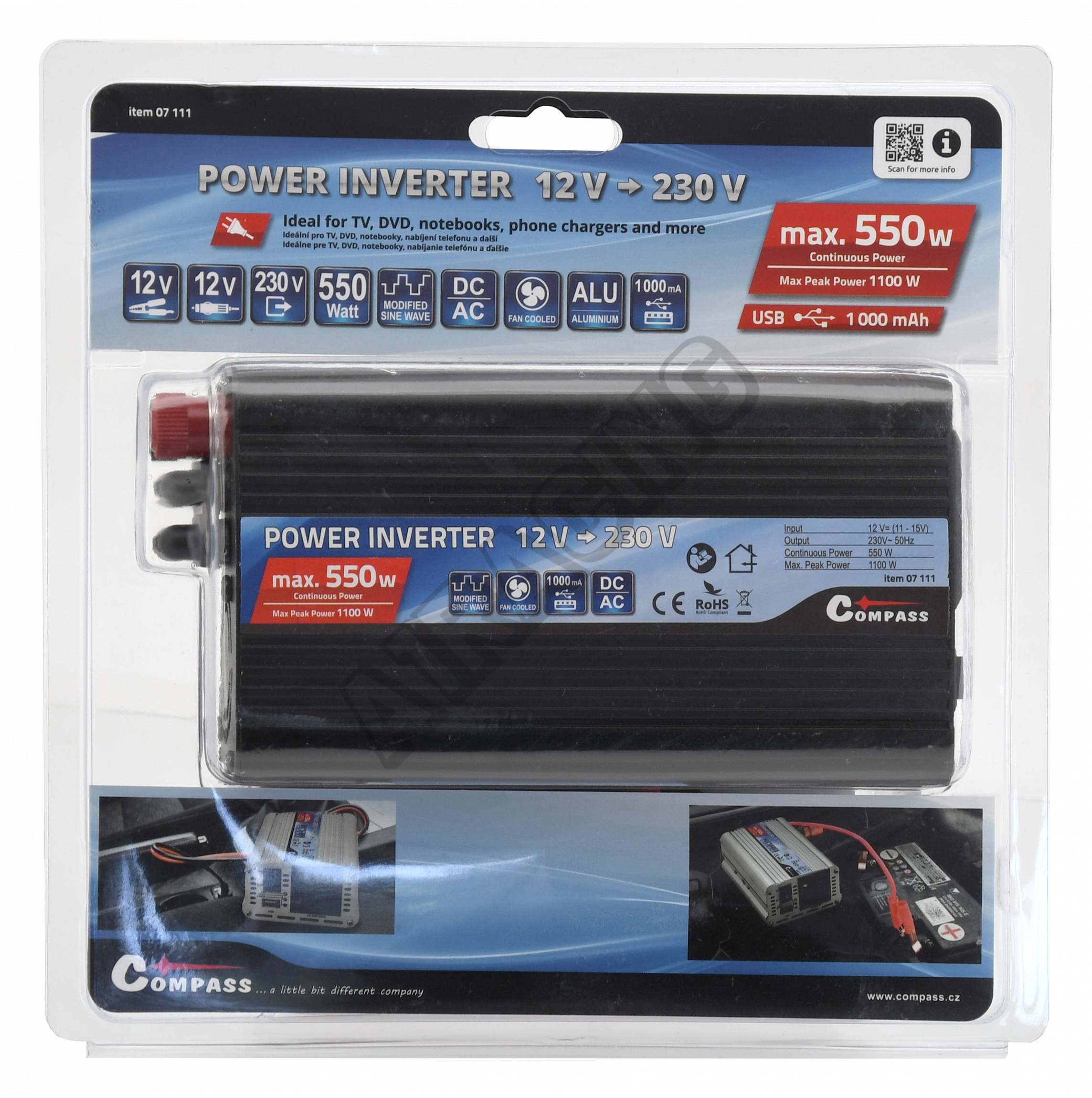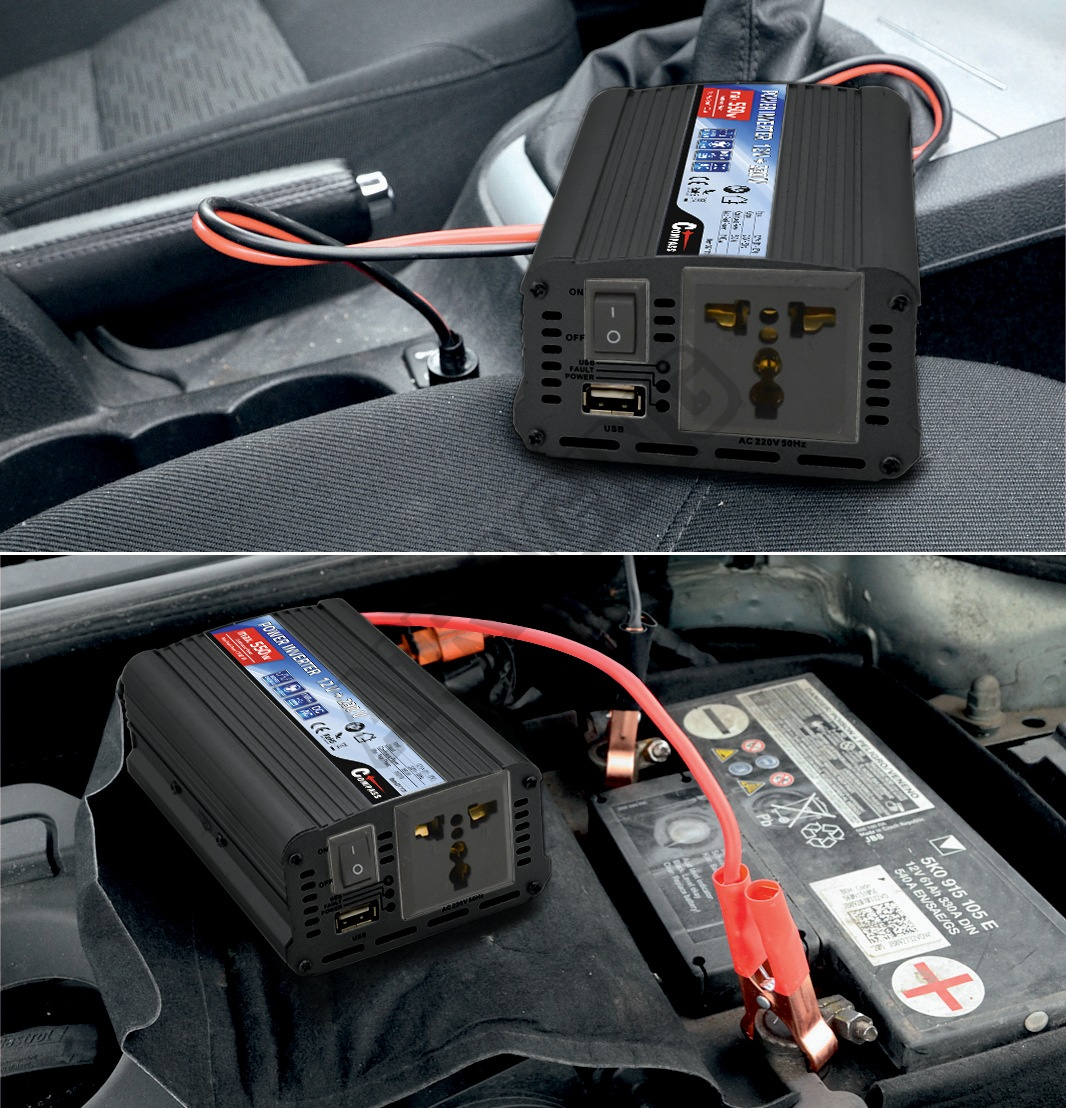 Vysoce výkonný měnič, určený pro univerzální použití, kdy je potřeba připojit síťové spotřebiče určené pro 230V/50Hz v místech s rozvodem 12 V=.