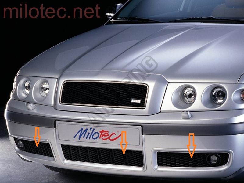 Třídílná mřížka nárazníku Milotec, černá s mlhovkami, Š.Octavia Facelift