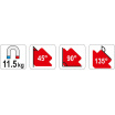 Umožňuje přesné spojování materiálů v úhlech 45°, 90° a 135°. Nosnost magnetu cca 11,5 kg. Povrchová úprava červené práškové lakování.