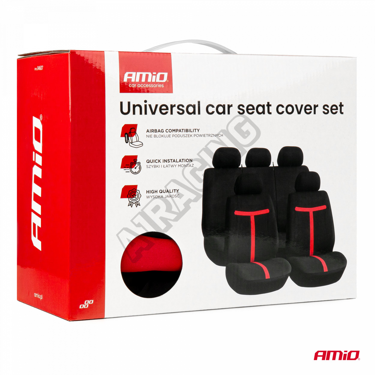 Potahy přizpůsobené pro sedadla s airbagy – neblokují jejich funkci. Mají otvory na opěrky hlavy a bezpečnostní pásy. Zadní části potahů jsou plně kryté, což zajišťuje ochranu celých předních sedadel, estetický vzhled a trvanlivost používání.