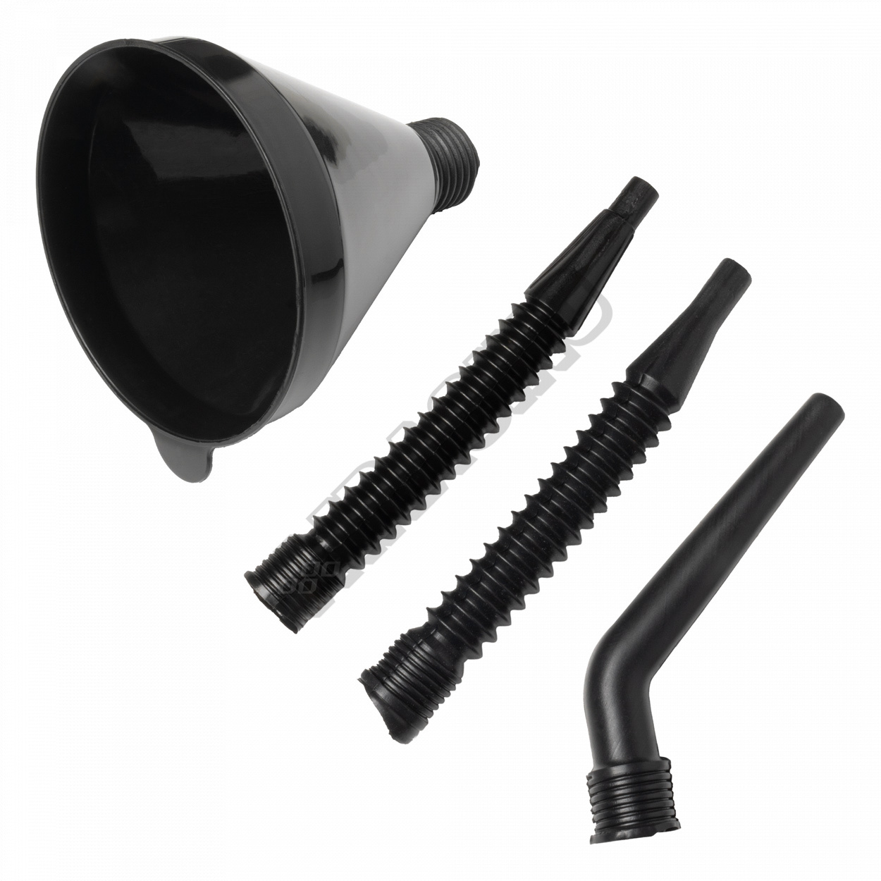 Recenze k produktu Univerzální černá flexibilní nálevka se sítkem, 4dílná, na palivo, kapaliny, vodu, 13 cm
