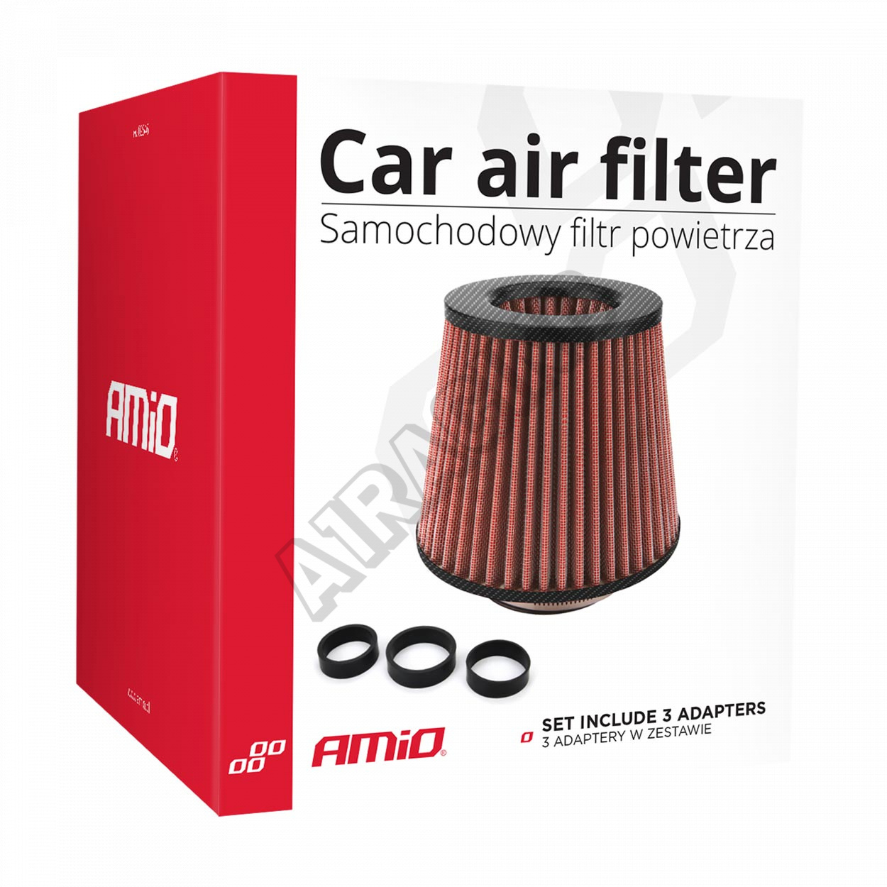Univerzální kuželový vzduchový filtr červený/uhlíkový + 3 adaptéry