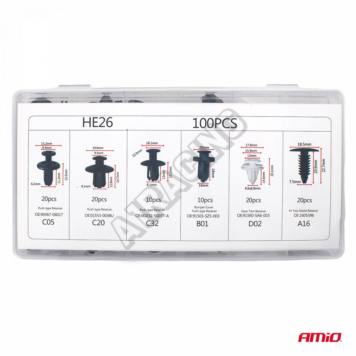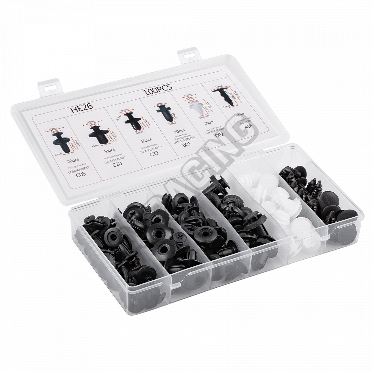 Univerzální sada různých typů plastového uchycení do auta 6 druhů / 100 ks Univerzální sada 100 kus