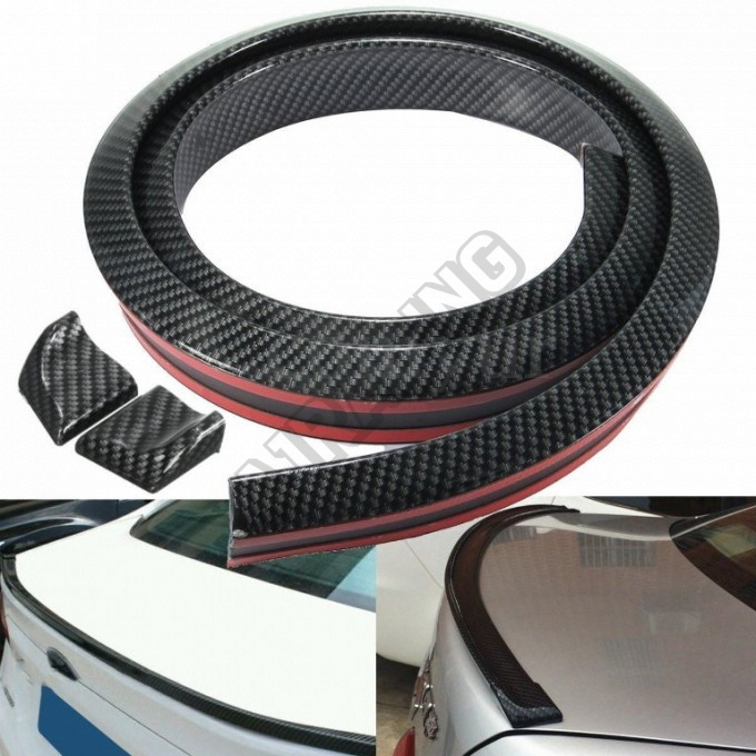 Univerzální, gumová spoilerová lišta pro lepení na zadní části automobilu. Délka: 1,5m, výška 20mm, šířka 35mm. Montáž. Důkladně očistěte, odmastěte a označte (např. fixou) místo na kterém má být lišta nalepena.Délku upravte tak, aby obě ozdobné koncovky nepřesahovaly obrys místa, na kterém má být spoilerová lišta nalepena. Nasuňte ozdobnou koncovku. Odstraňte postupně červenou ochrannou folii z koncovky i lišty a přitiskněte na karoserii. Na druhý konec lišty nasuňte druhou koncovku a dotlačte. Při tomto úkonu dbejte na to, abyste jste se prsty nedotýkali lepící plochy. Důkladně dotlačte. Nejlepší k tomu bude kousek látky, který náleží přesouvat po celé její délce se stejnou silou. Zabrání to také poškrábání lišty. Nelepte na zmrzlý nebo horký povrch. Okolní teplota pro lepení se doporučuje okolo 18°C. Během lepení se doporučuje nahřátí lišty teplým vzduchem. Zaručí to lepší elastičnost lišty. UPOZORNĚNÍ. Po nalepení na karoserii vozu nemyjte auto ručně ani v automatické myčce po dobu 24 hod.