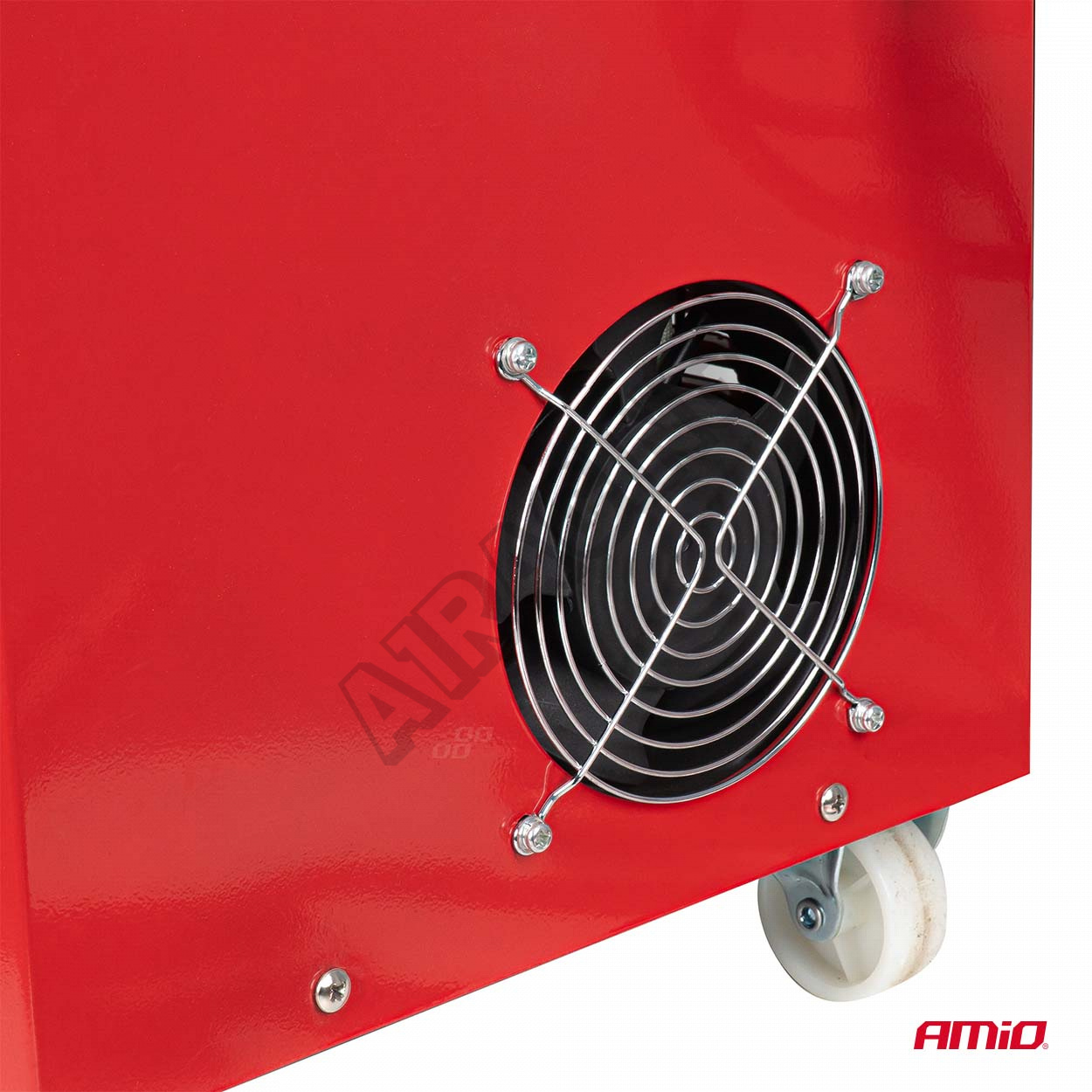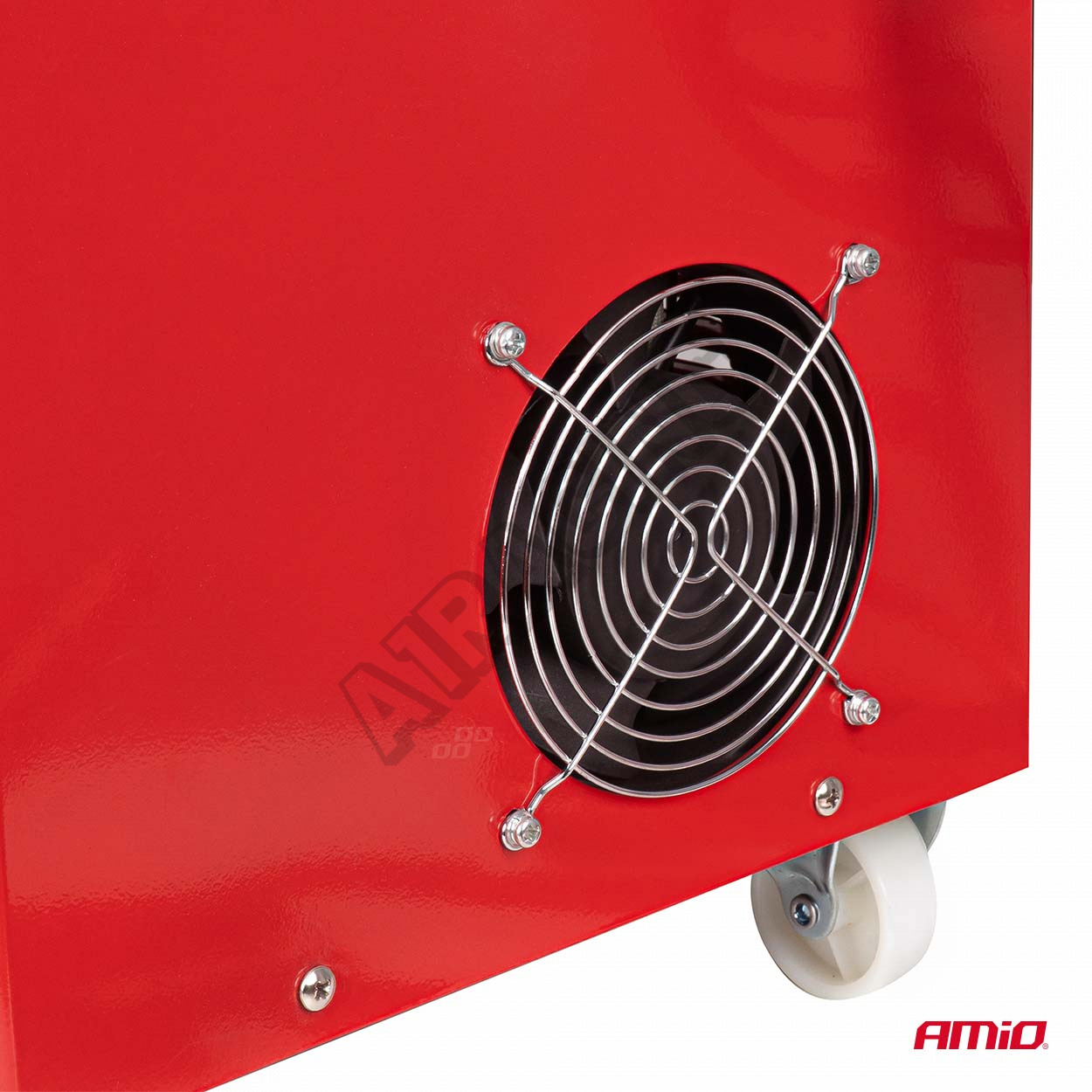 - Konstrukce zařízení je vybavena pevným držadlem a transportními koly, co usnadňuje přemísťování usměrňovače v různých podmínkách