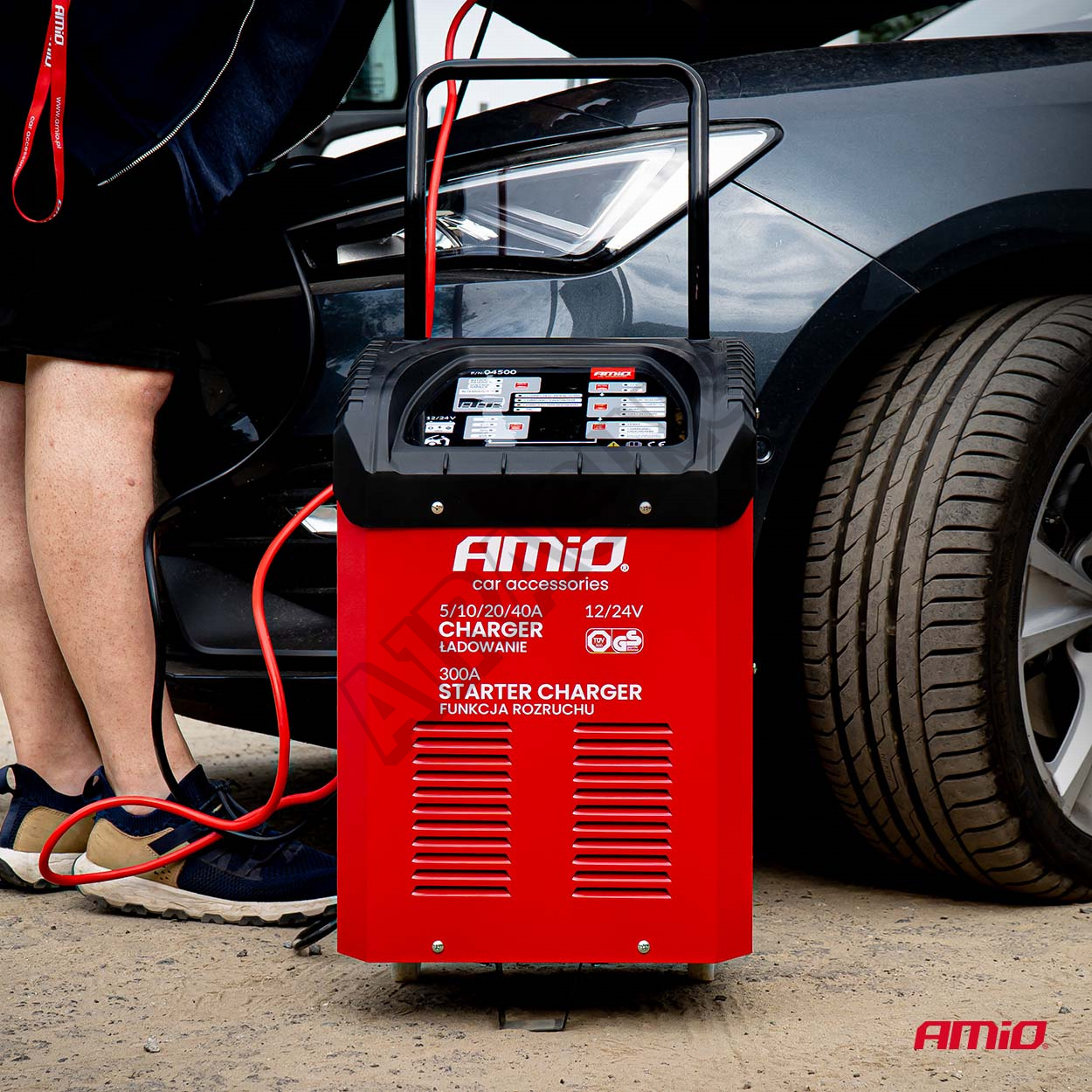 Nabíječka AMiO s funkcí startování je moderní, mikroprocesorové zařízení určené k nabíjení a podpoře startování baterií 12V a 24V. Díky použité technologii je spolehlivým řešením pro autoservisy, servisy a náročné uživatele.