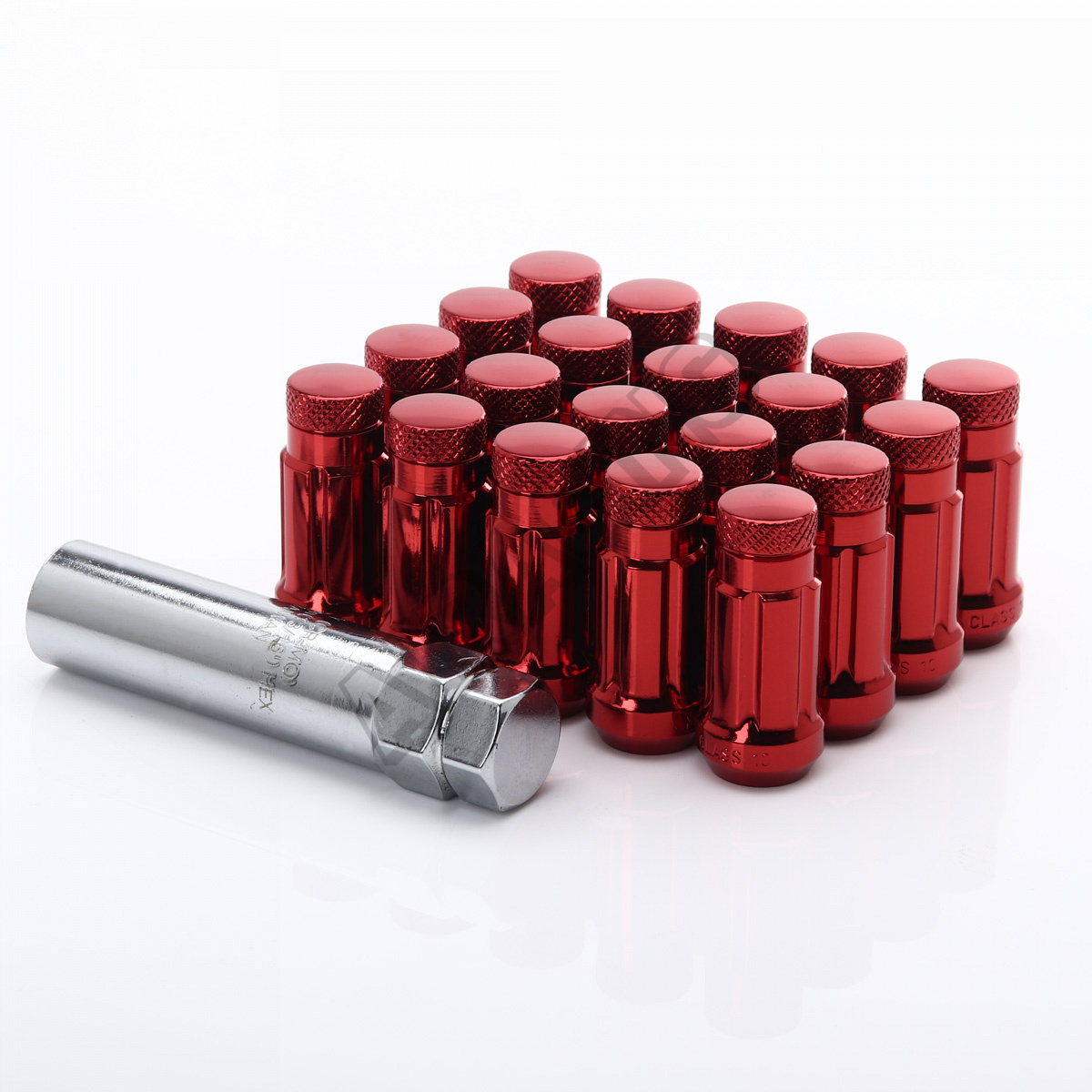 Úzké kované sportovní matice červené Japan Racing M12X1,5 delší - velmi pevné kované ocelové úzké