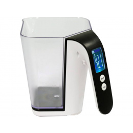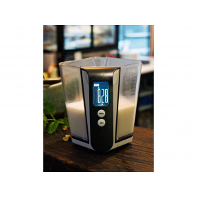 Kuchyňská váha LUND na tekutiny s nádobou o celkové kapacitě 1200 ml a maximálním zatížením 2000 g. Vybavena přehledným LCD displejem zobrazujícím 4 váhové jednotky na výběr a indikátory přetížení a vybití baterie. Přístroj má tři funkce měření - pevné nebo sypké produkty, voda a mléko.