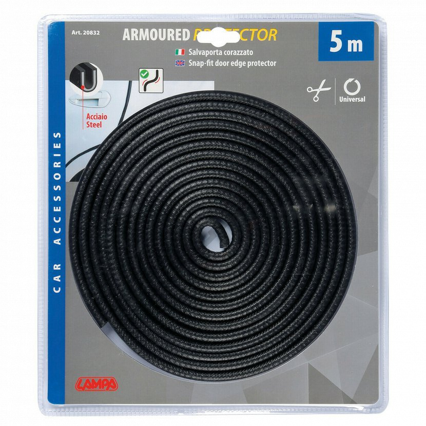 Tento chránič dveří Armoured Protector od italské firmy Lampa je vyroben z měkčeného plastu s podlepením a obsahuje ocelové jádro. Lze ho snadno ohýbat a stříhat na míru. Chránič se jednoduše nasadí na hranu dveří auta, které chrání před poškozením.