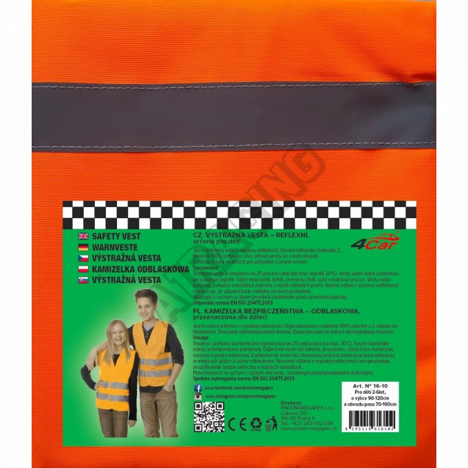 Životnost vesty je omezena na 25 pracích cyklů (při max. teplotě 30°C). Vestu sušte volně zavěšenou při pokojové teplotě. Oděv nelze bělit, žehlit, chemicky čistit , sušit v bubnové pračce.Vestu nelze používat, pokud je znečištěná zejména v místě reflexních pruhů. Nošení oděvů s vysokou viditelností nezaručuje, že uživatel bude viditelný za všech podmínek.