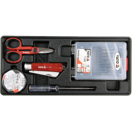 Sada 23 kusů příslušenství. Sada je přehledně srovnána ve vložce do zásuvky z PVC.