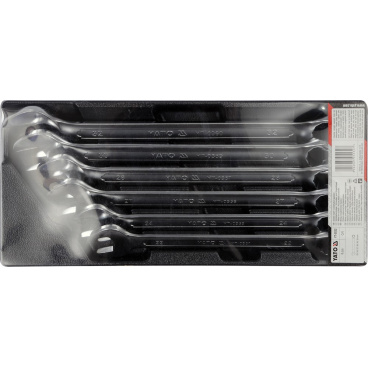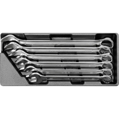 Sada 6 kusů očkových klíčů z CrV oceli. Klíče jsou přehledně srovnány ve vložce do šuplíku z PVC.