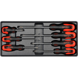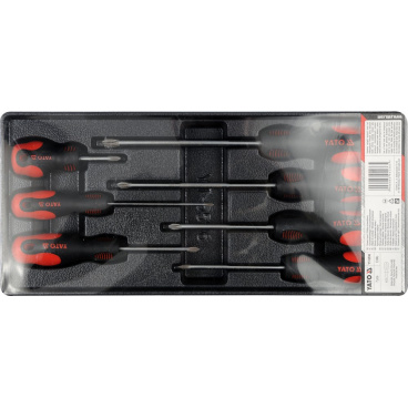 Sada 7 kusů křížových šroubováků z CrV oceli. Šroubováky jsou přehledně srovnány ve vložce do zásuvky z PVC.