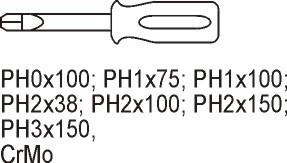 | velikosti | PH0x100; PH1x75; PH1x100; PH2x38; PH2x100; PH2x150; PH3x150 mm |