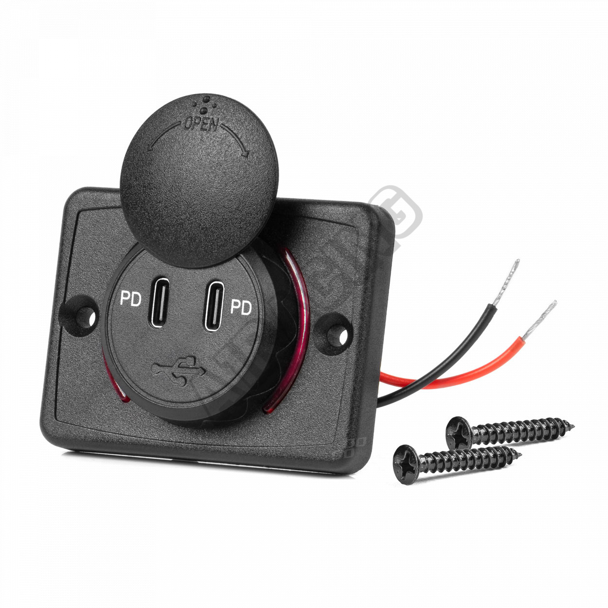 Vodotěsná čtvercová automobilová nabíječka se zásuvkami USB 2x USB-C 12V 24V