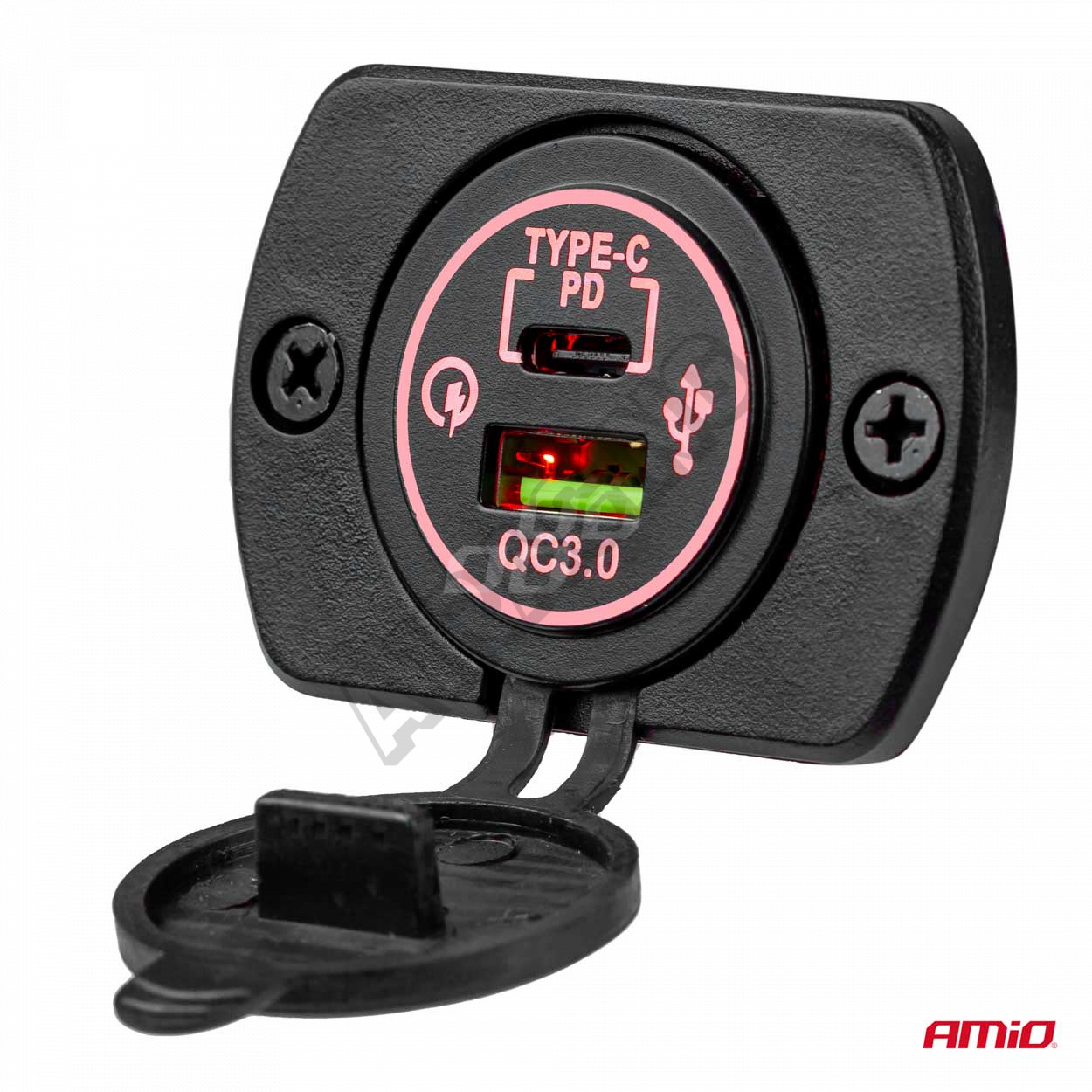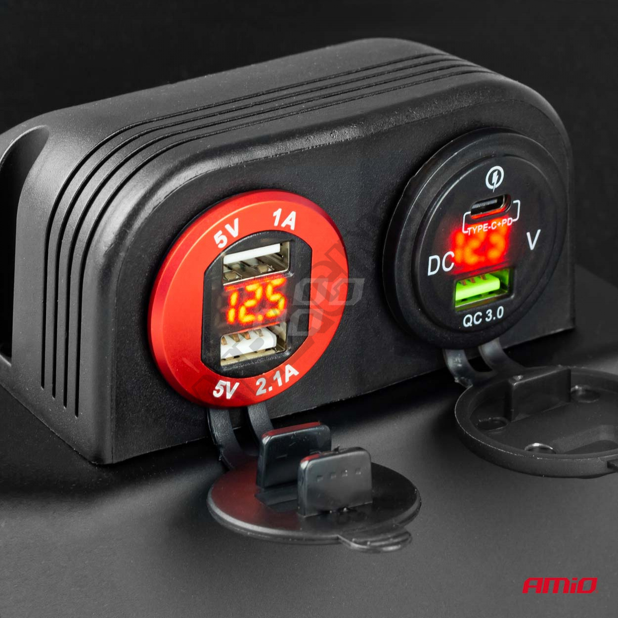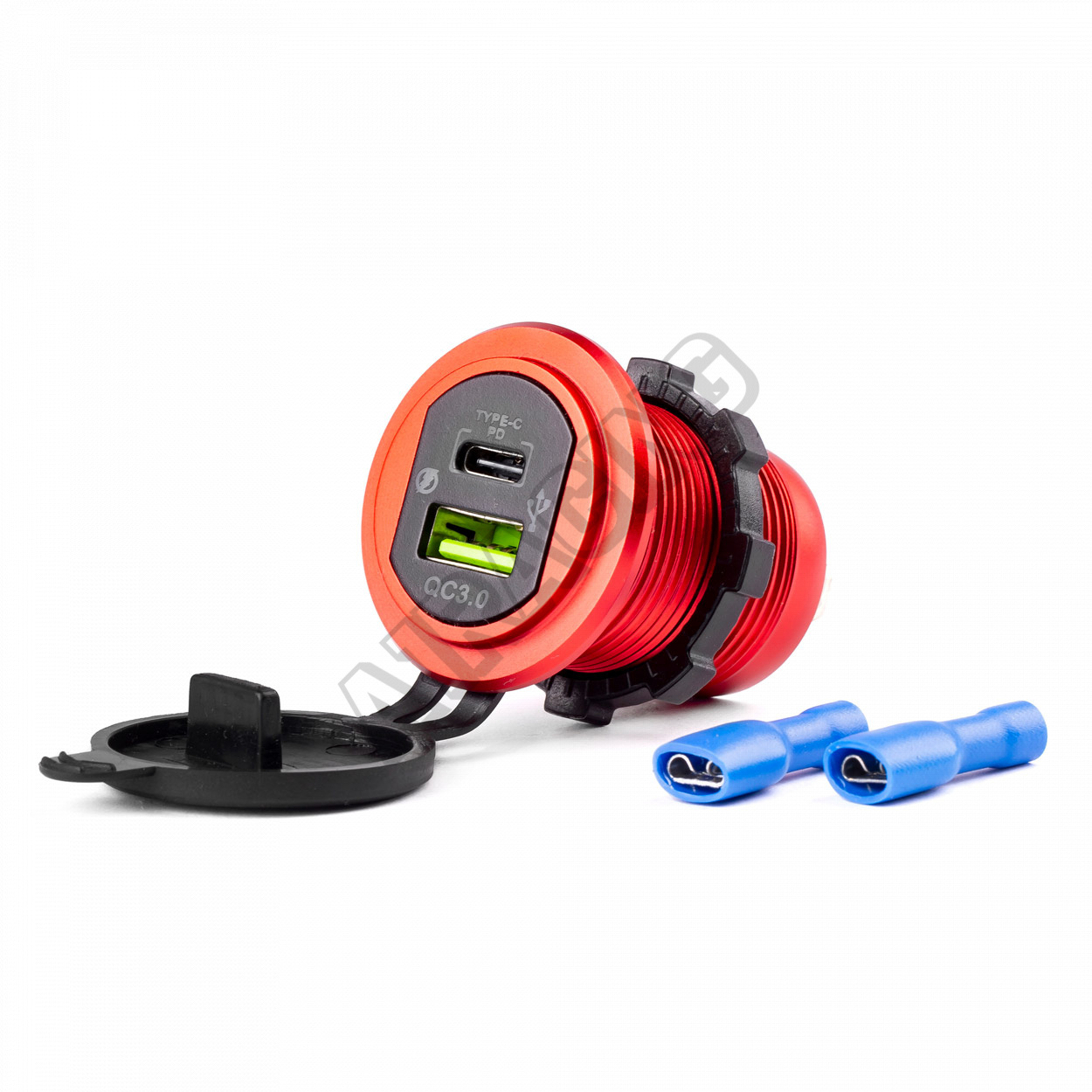 Vodotěsná nabíječka se zásuvkami USB + USB-C 12V 24V MOD-09