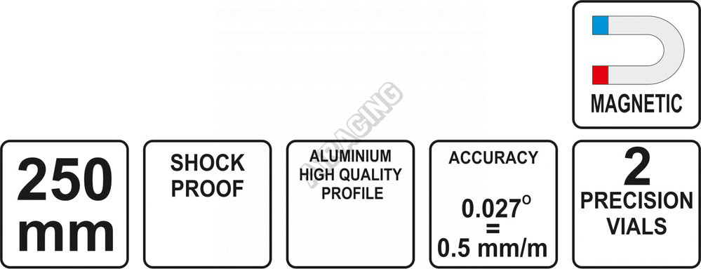 Hliníková vodováha trapézová s magnetickými vlastnostmi, s přesností 0,027° (0,5mm/m).