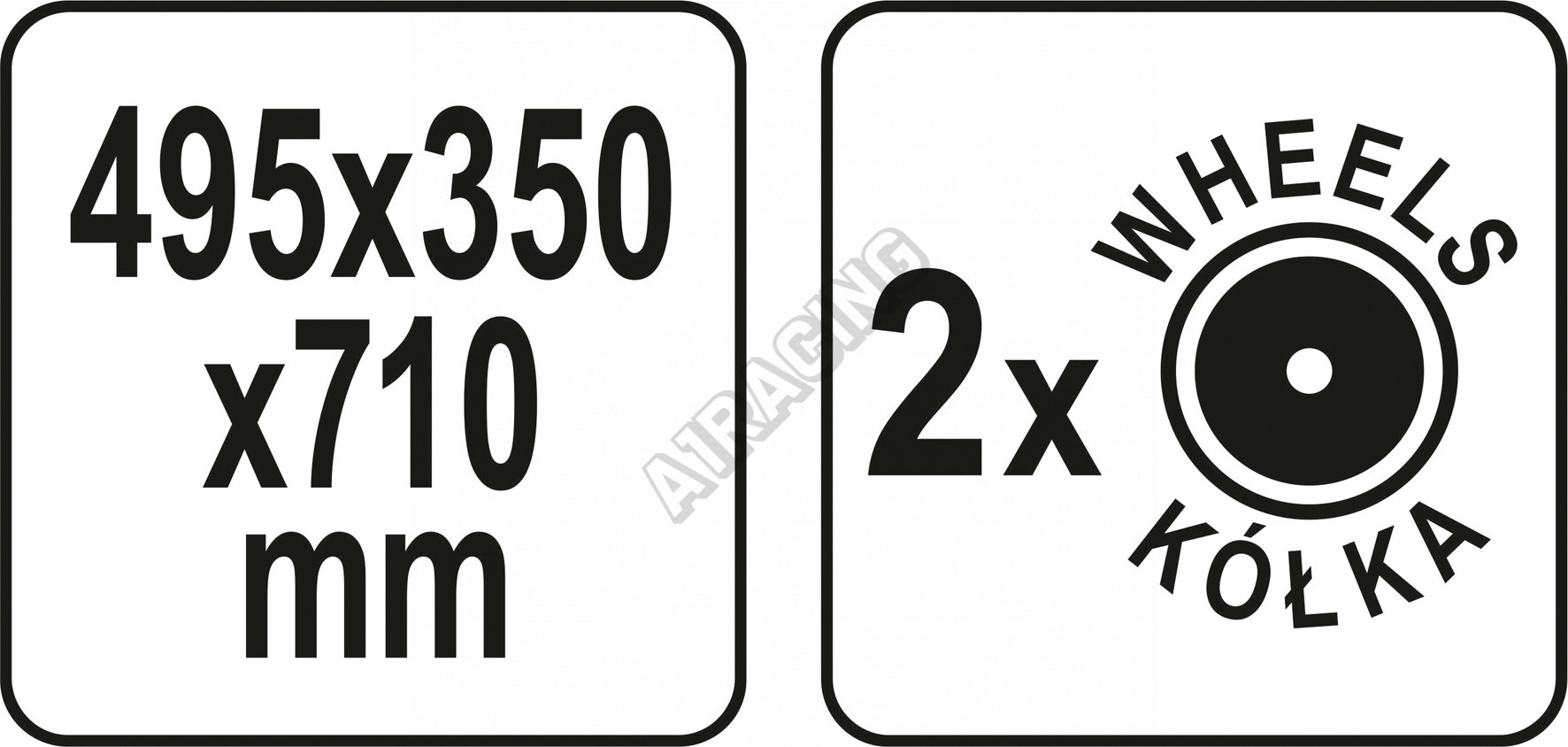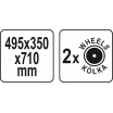 Vyrobeno z plastu s rozměry 49,5 x 35 x 71 cm odolného proti mechanickému poškození.