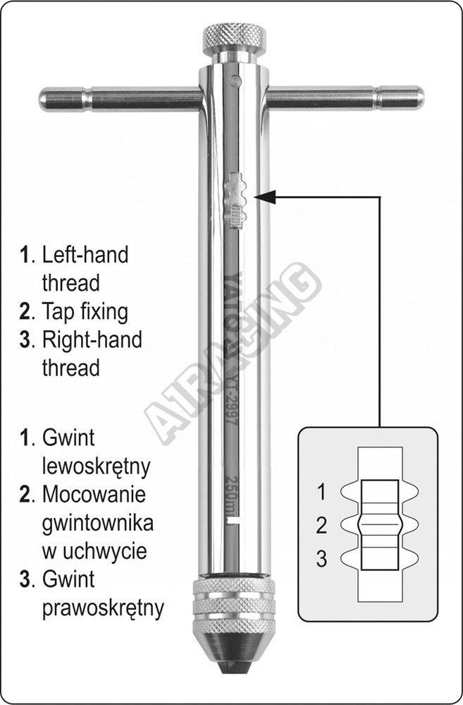 • Celková délka 250 mm • Upinací hlavice pro závitníky M3 - M10 • Ráčnové provedení • Přepínač levý / pravý směr