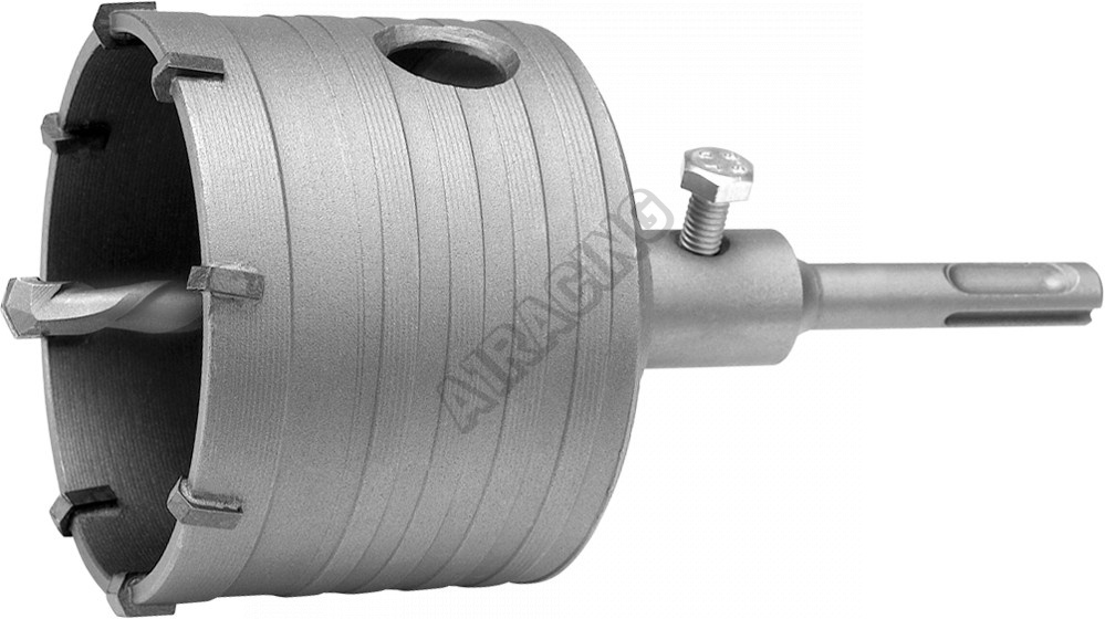 Korunkový vrták s tvrdokovovými zuby pro příklepové vrtání betonu a zdiva vrtačkou s elektropneumatickým příklepem, s upínáním SDS Plus.