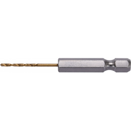 Vyrobeno z rychlořezné HSS oceli s Titanovým povlakem a vrcholovým úhlem 135°. Vrták je opatřen HEX 1/4" uchycením.