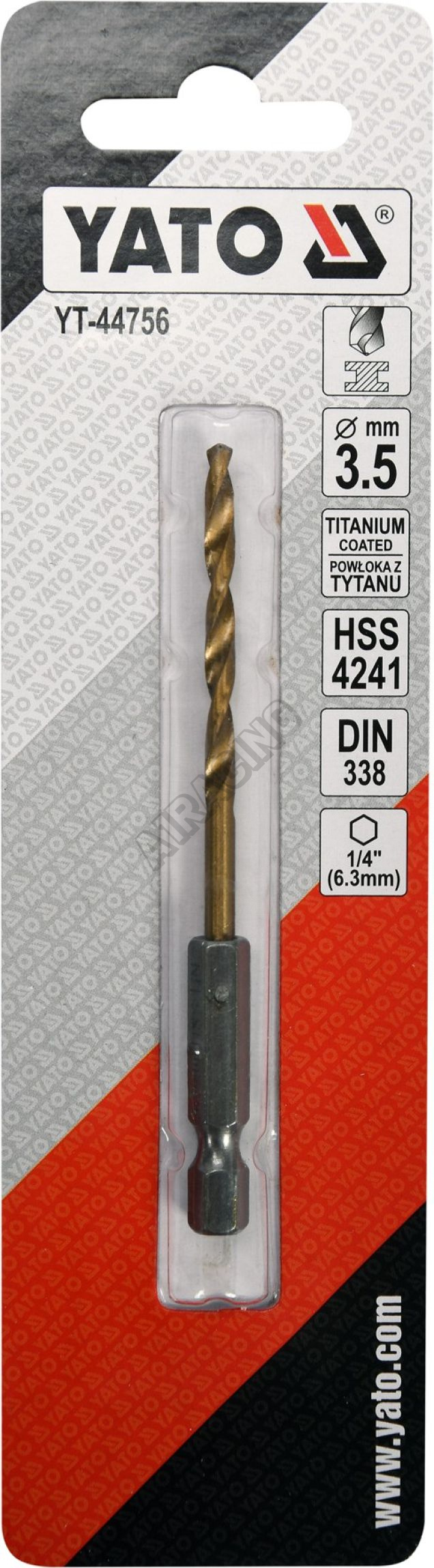 Vyrobeno z rychlořezné HSS oceli s Titanovým povlakem a vrcholovým úhlem 135°. Vrták je opatřen HEX 1/4" uchycením.
