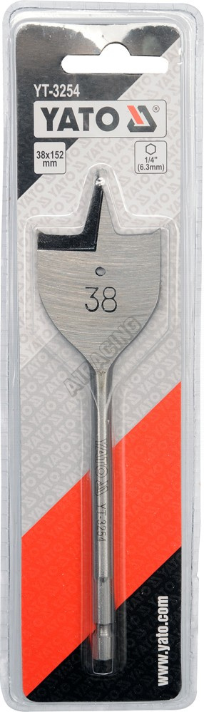 Plochý vrták do dřeva vyrobený z kvalitní nástrojové oceli se šestihrannou stopkou 1/4". • Vrták pl