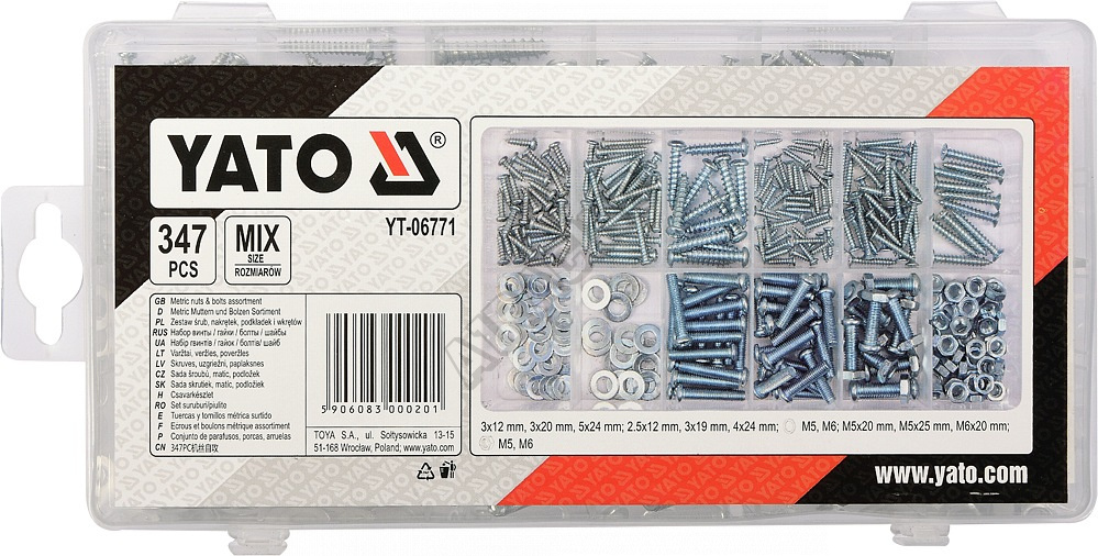 Sada 347 kusů šroubů, matic, vrutů a podložek.