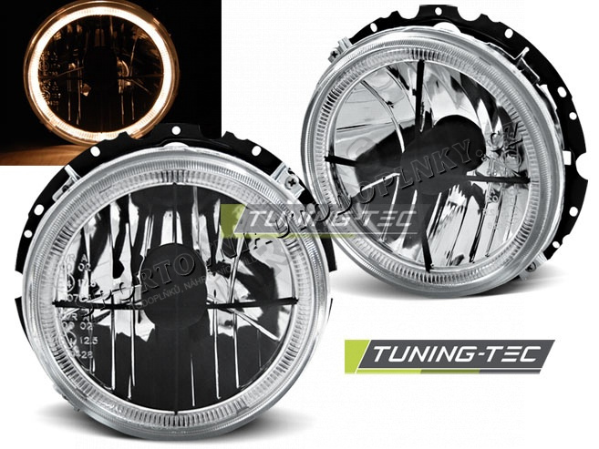 VW GOLF 1 05.1974-07.1983 PŘEDNÍ ČÍRÁ SVĚTLA ANGEL EYES CHROME BLACK CROSS VNĚJŠÍ