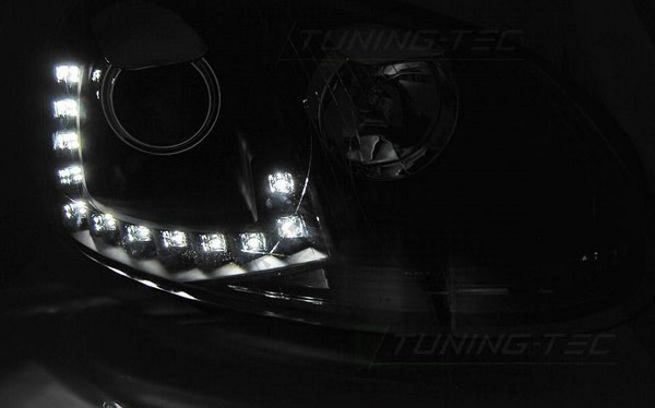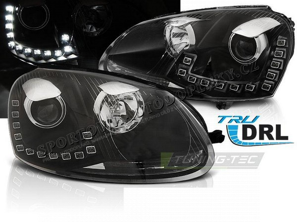 VW Golf 5 10.2003-09 přední čirá světla LED DRL black10 250 Kč