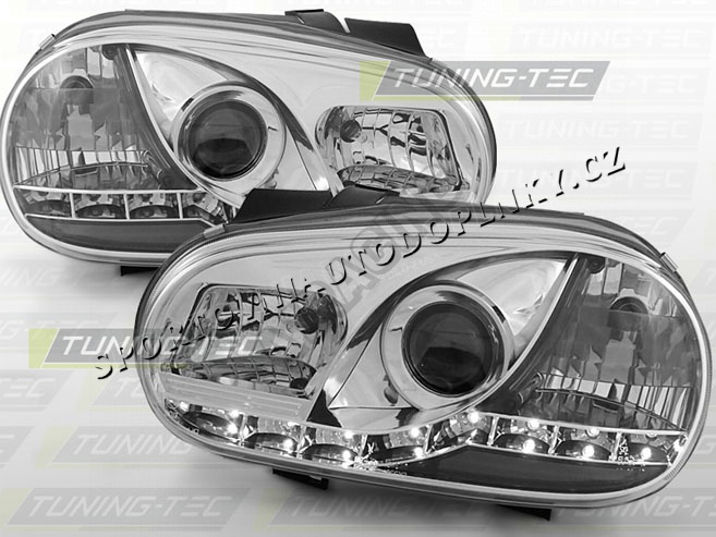 VW GOLF IV 1997-03 PŘEDNÍ ČÍRÁ SVĚTLA DAYLIGHT LED CHROME