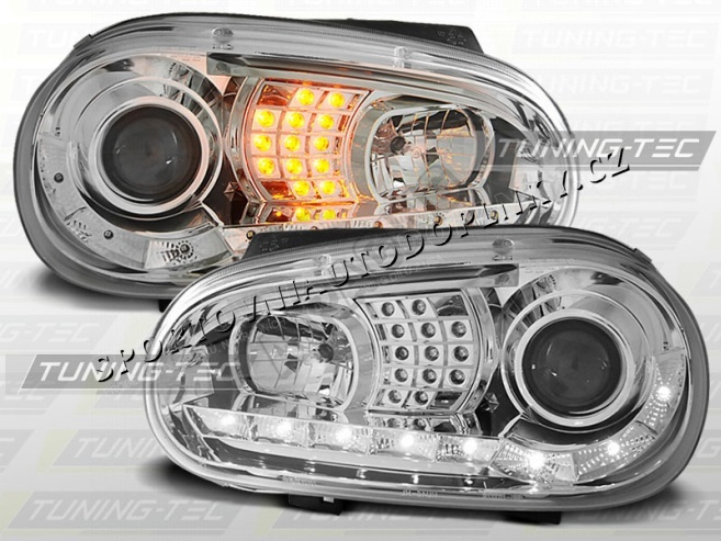 VW GOLF IV 1997-03 PŘEDNÍ ČÍRÁ SVĚTLA DAYLIGHT LED CHROME