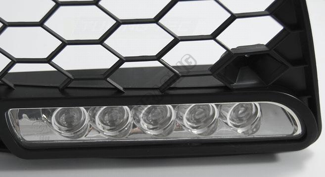 VW Golf V GTI LED denní svícení v mřížce mlhovky black